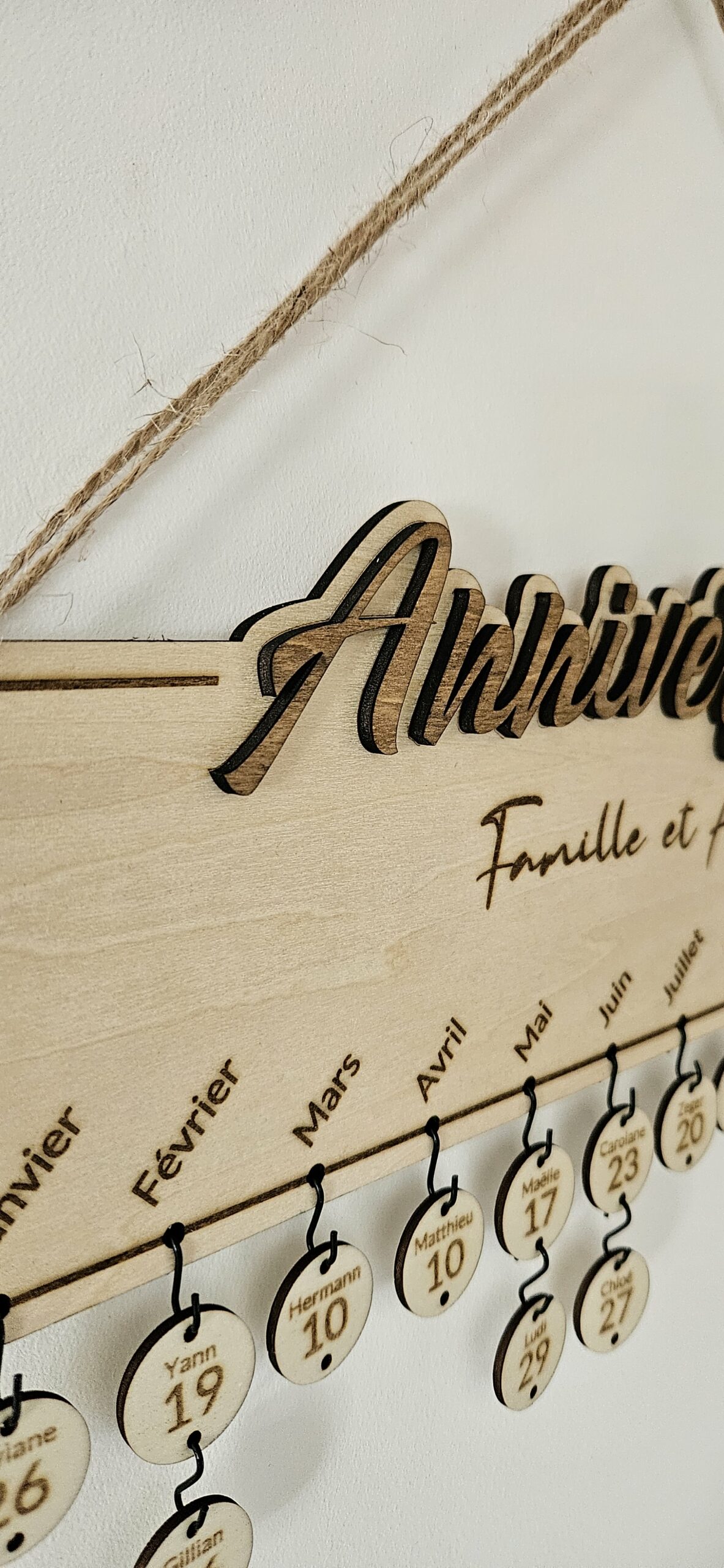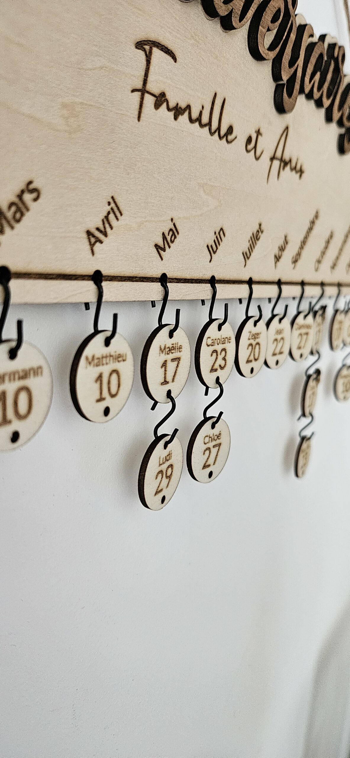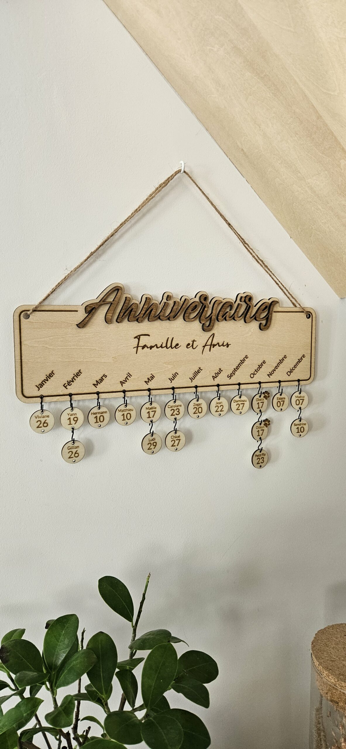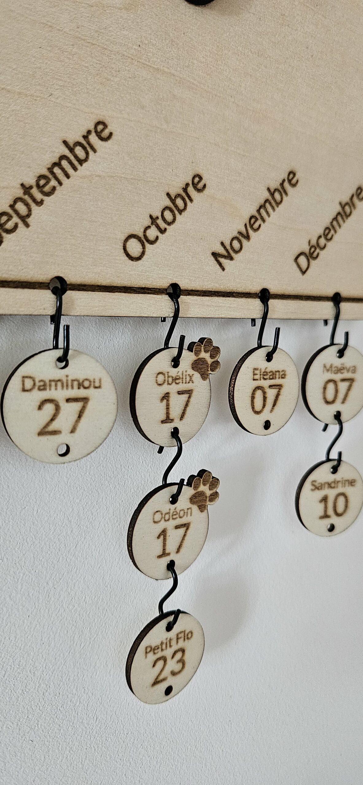 Calendrier anniversaires mural en bois personnalisable à suspendre – Idéal cadeau noël, anniversaire, fête.