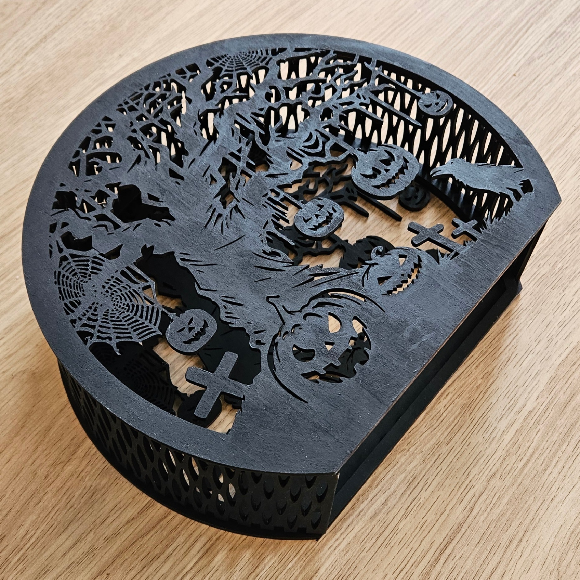 Découpée au laser et finement ajourée, elle diffuse une lumière douce et mystérieuse, parfaite pour créer une ambiance magique à la maison.